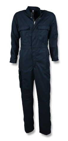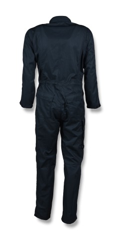 Vlamwerende antistatische overall met een verdekte ritssluiting gecombineerd met een drukknoopsluiting.